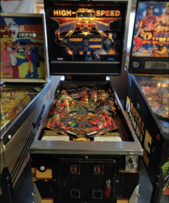 Innovative Gameplay Mechanics: High Speed was the first pinball machine to feature a complete musical score, alpha-numeric displays, and a playfield-mounted beacon light that simulates police sirens during high-intensity moments.