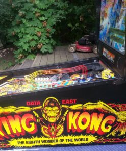 The artwork on the playfield and cabinet is a typical Bally design from the early 80s, featuring vibrant colors, detailed artwork, and stylized representations of King Kong and the iconic scenes from the movie.