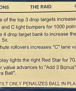 Playmatic machines are generally less common than Bally, Williams, or Gottlieb machines, making The Raid a rare find outside of Europe.